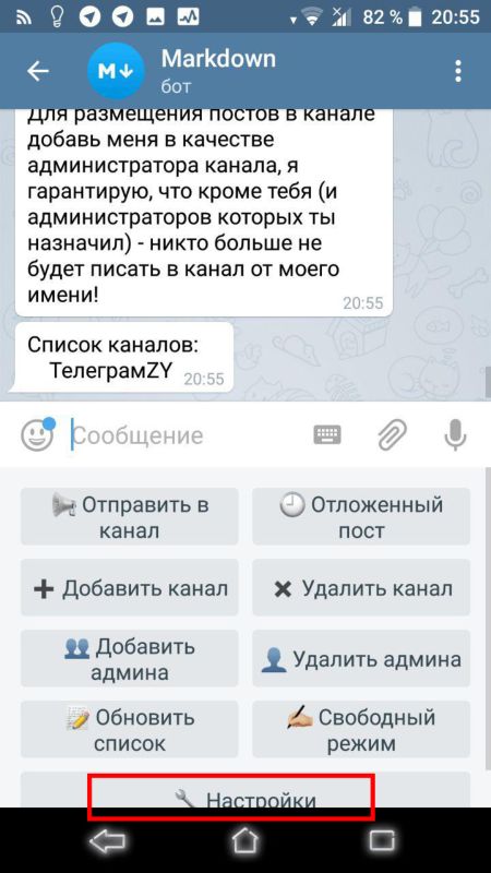 Чтобы сделать гиперссылку для поста в канале или в сообщении придется воспользоваться ботом, например, @markdownbot. Начать стоит с добавления бота в канал Телеграмм с правами администратора. Для этого потребуется: