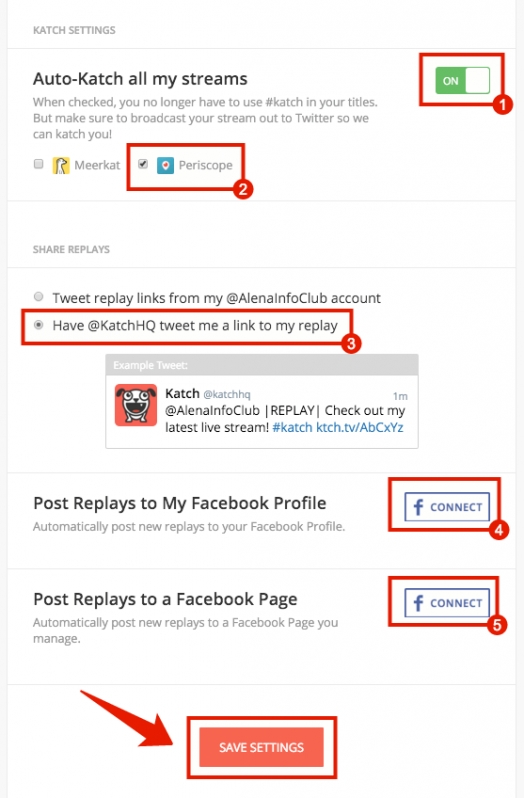 ВНИМАНИЕ: Хорошо подумайте на вашей стратегией продвижения в Перископе, прежде чем разрешать Katch.me постить видео записи от вашего имени.